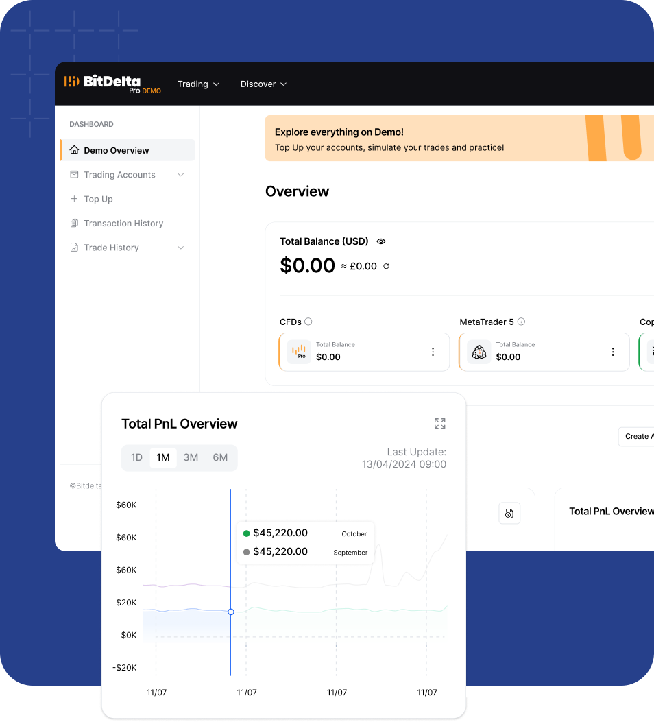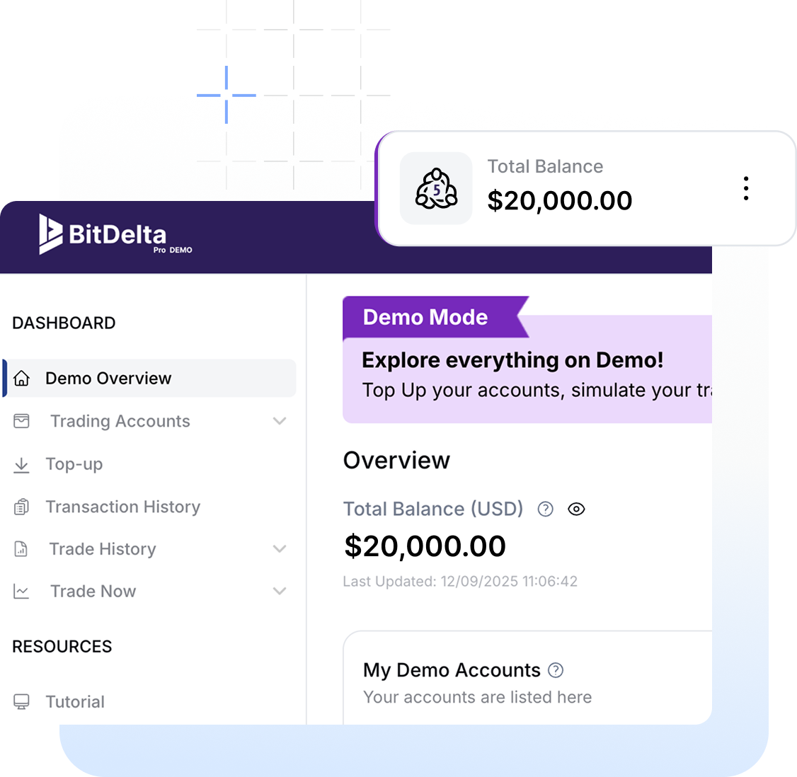 A demo trading account lets you explore BitDelta Pro’s full platform and experience real account features in a