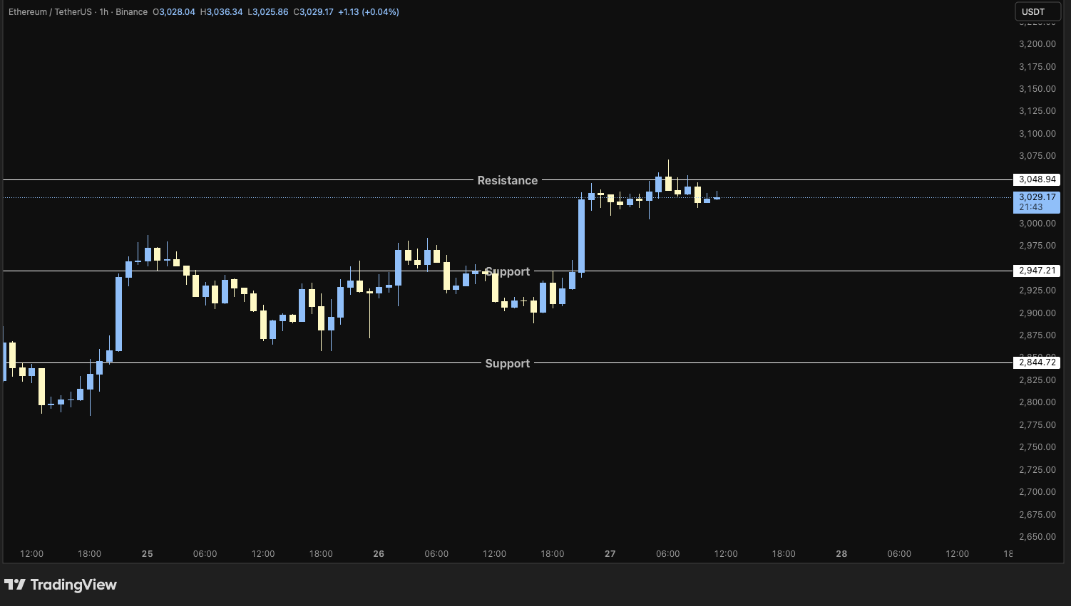 Key Levels: Support at 2,947.21 │ Resistance at 3,048.94 / 2,844.72