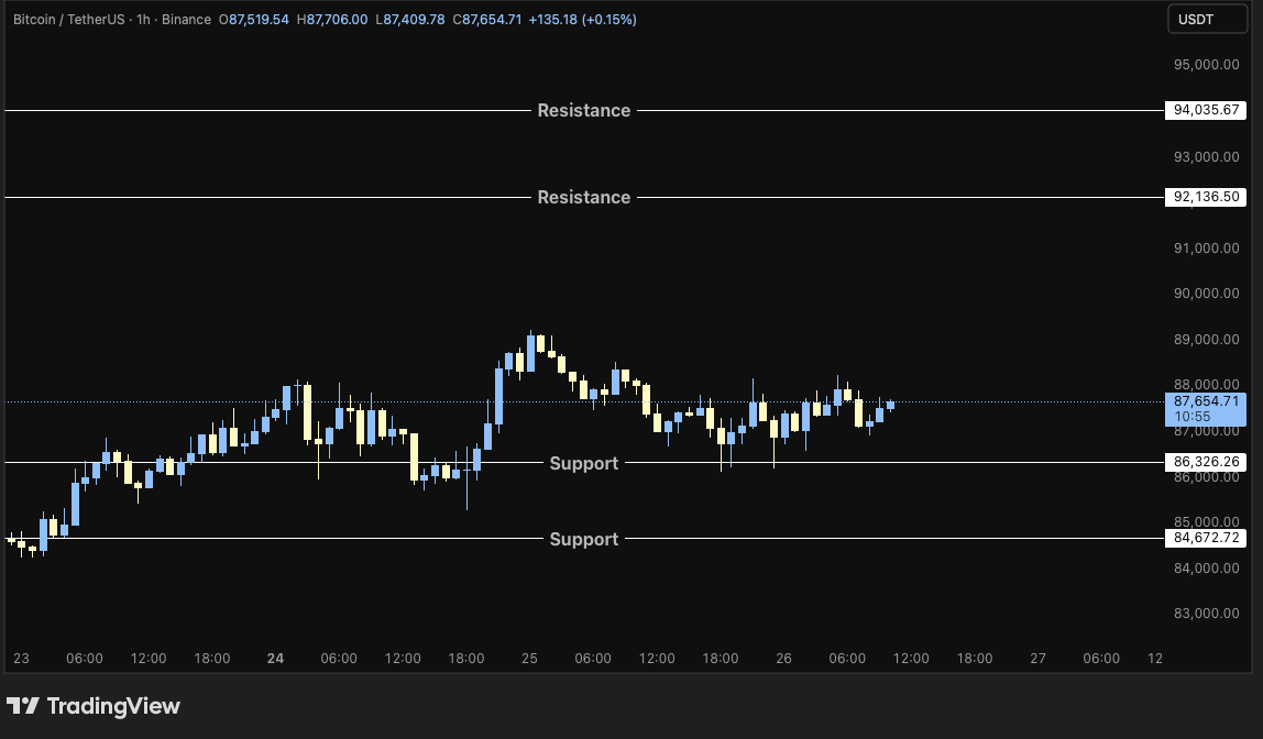 Key Levels: Support at 86,326.26 │ Resistance at 92,136.50 / 94,035.67