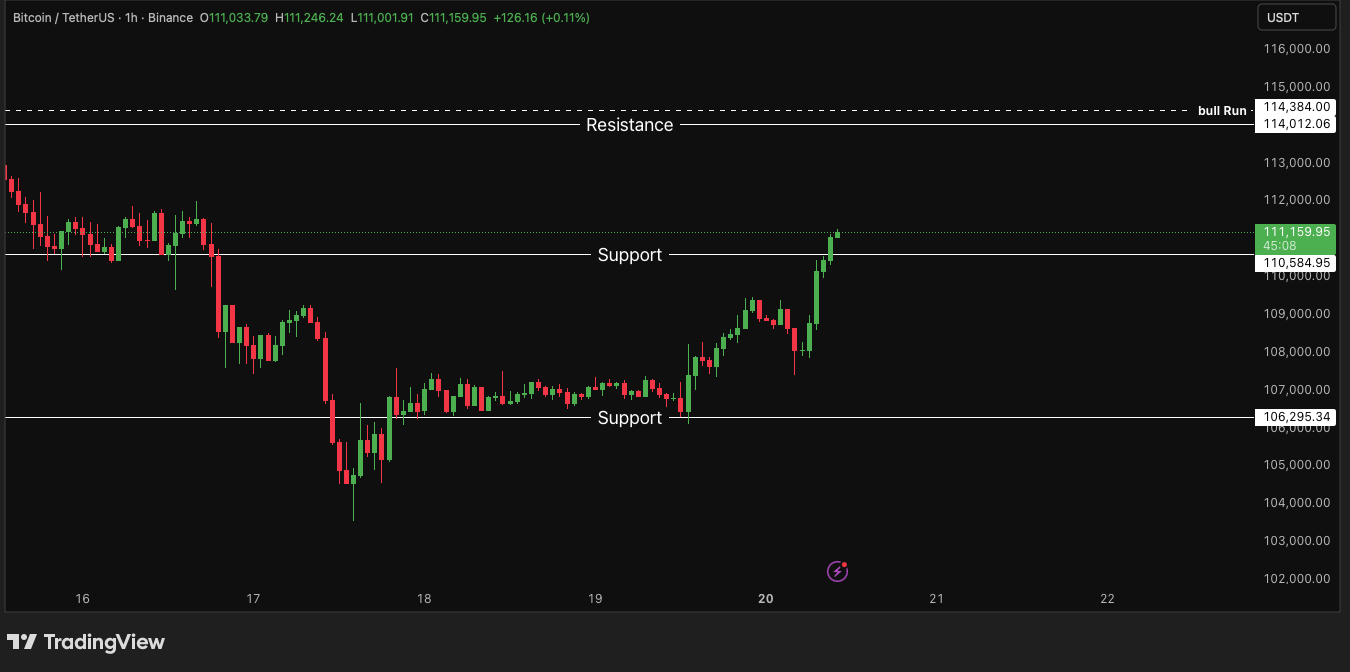 Key Levels: Support at $110,584.95 | Resistance at $114,012.06