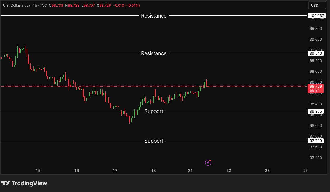 Key Levels: Support at $98.265 | Resistance at $99.340