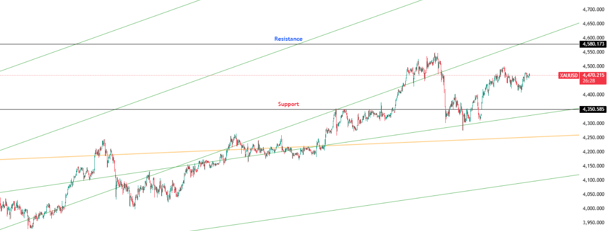 Key Levels: Support at $4,350.59 | Resistance at $4,580.17