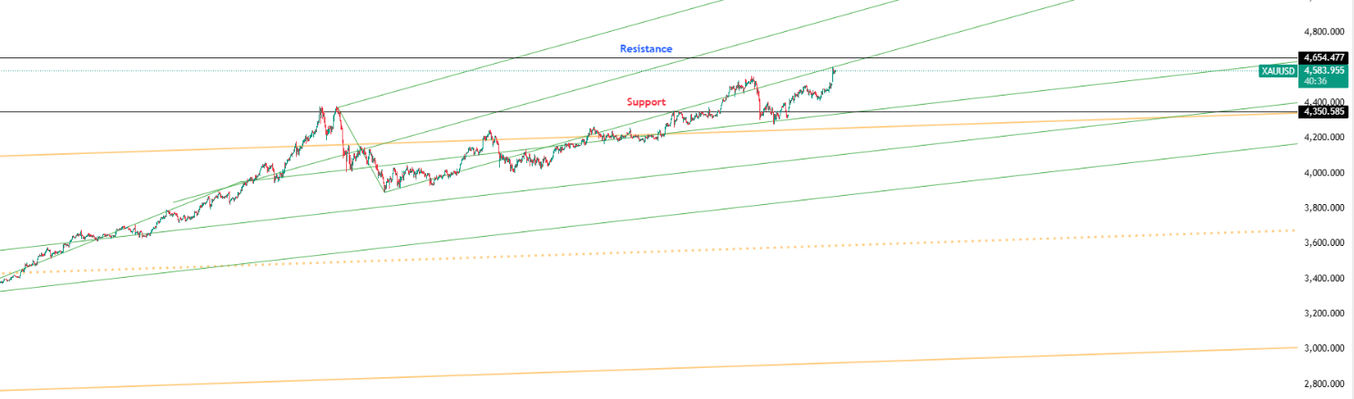 Key Levels: Support at $4,350.59 | Resistance at $4,654.48