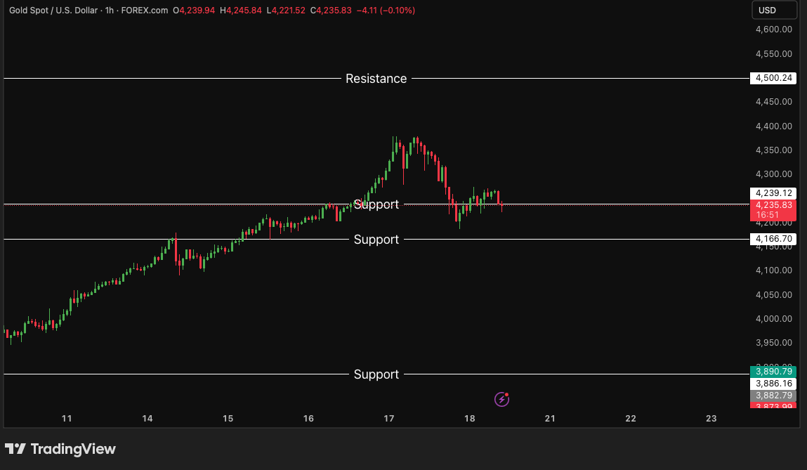 Key Levels: Support at $4,239.12 | Resistance at $4,500.24
