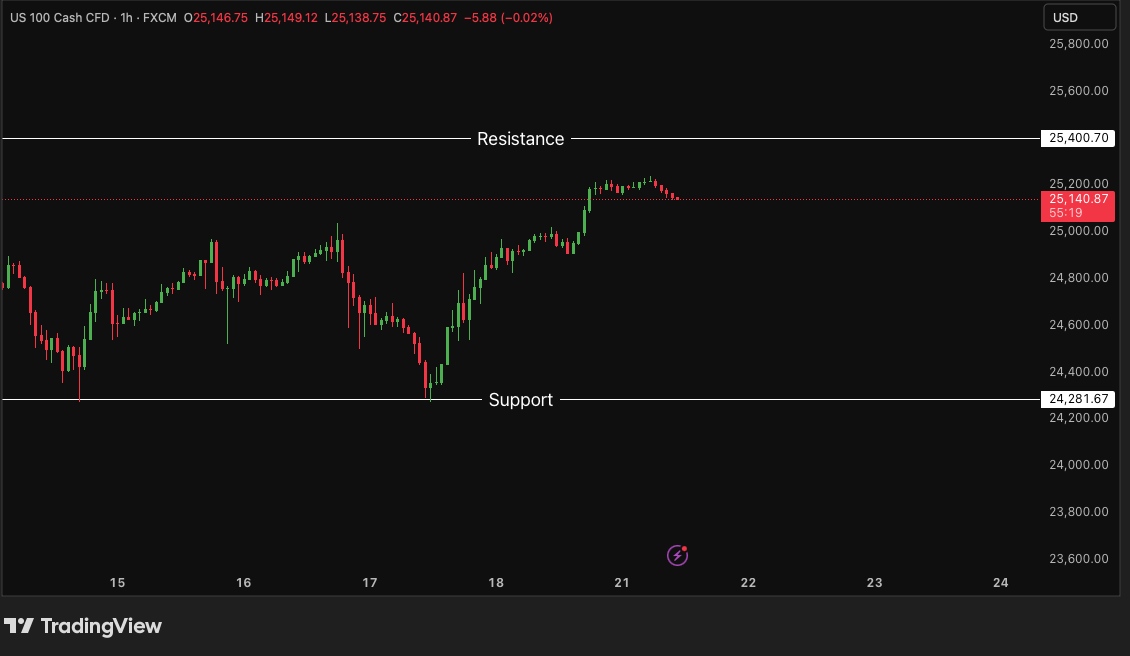 Investor Takeaway: Nasdaq maintains bullish momentum; a breakout above $25,400 could extend the uptrend, while support near $24,282 provides a reference for pullbacks.