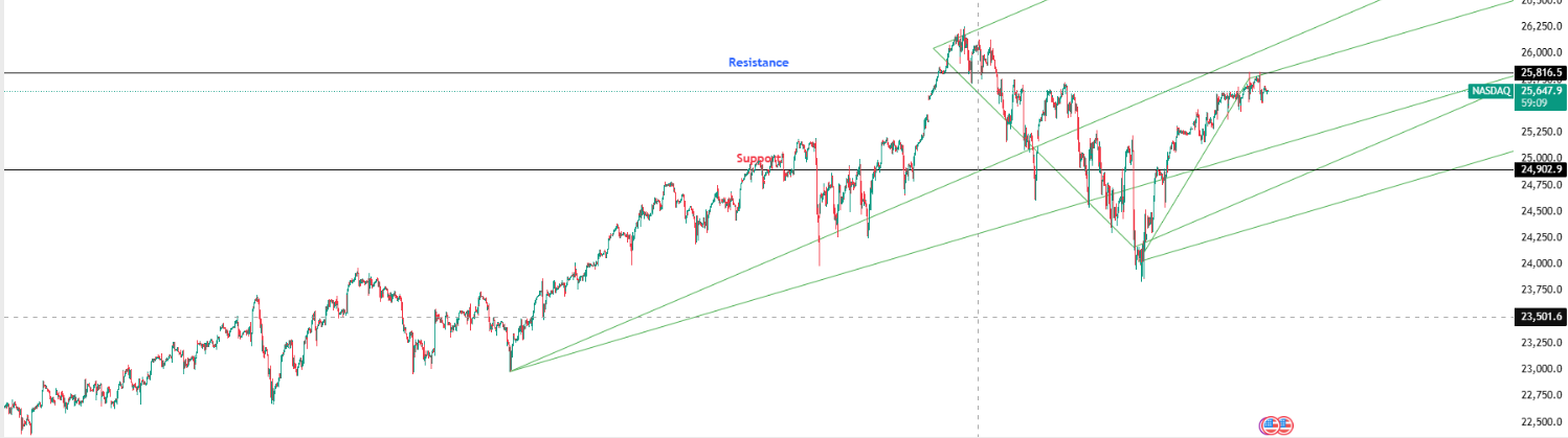 Key Levels: Support at 24,902.90 | Resistance at 25,816.50