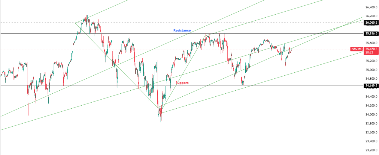 Key Levels: Support at 24,649.3 | Resistance at 25,816.5