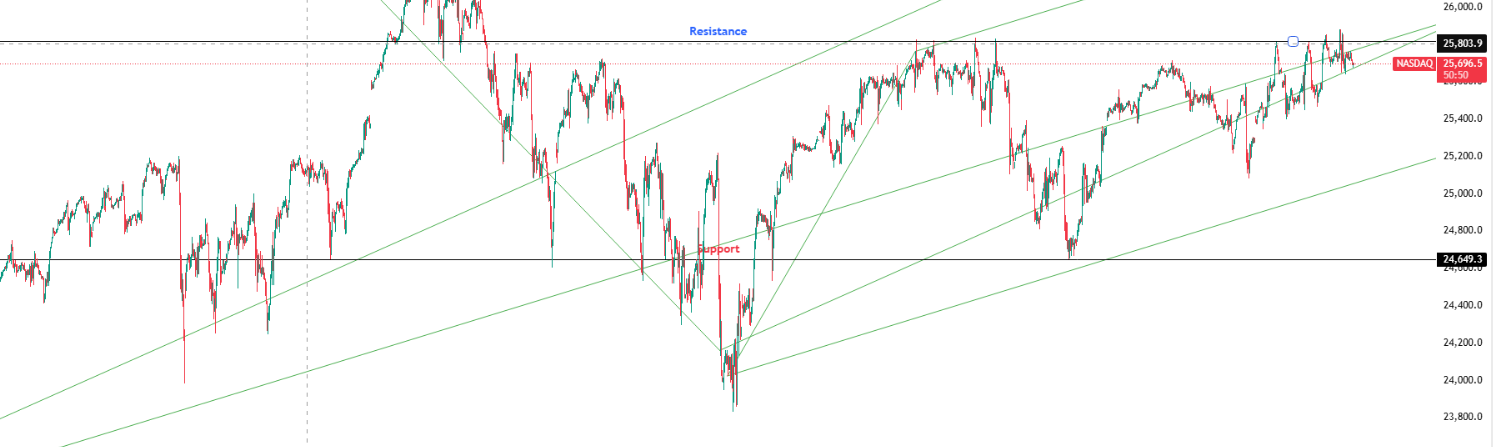 Key Levels: Support at 24,649.30 | Resistance at 25,816.50