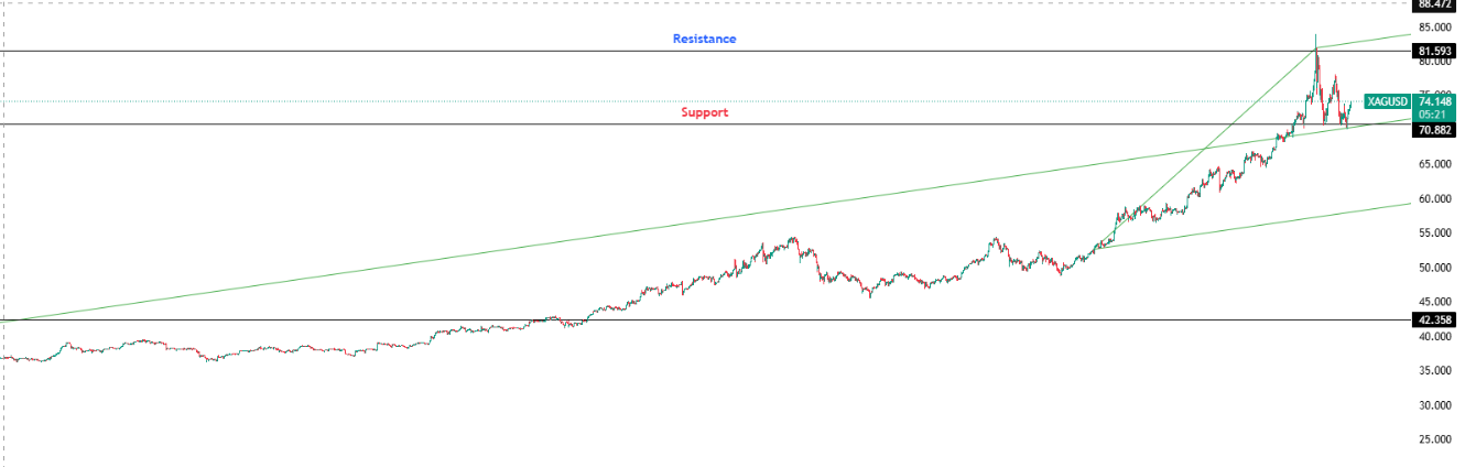 Key Levels: Support at $70.882 | Resistance at $81.593
