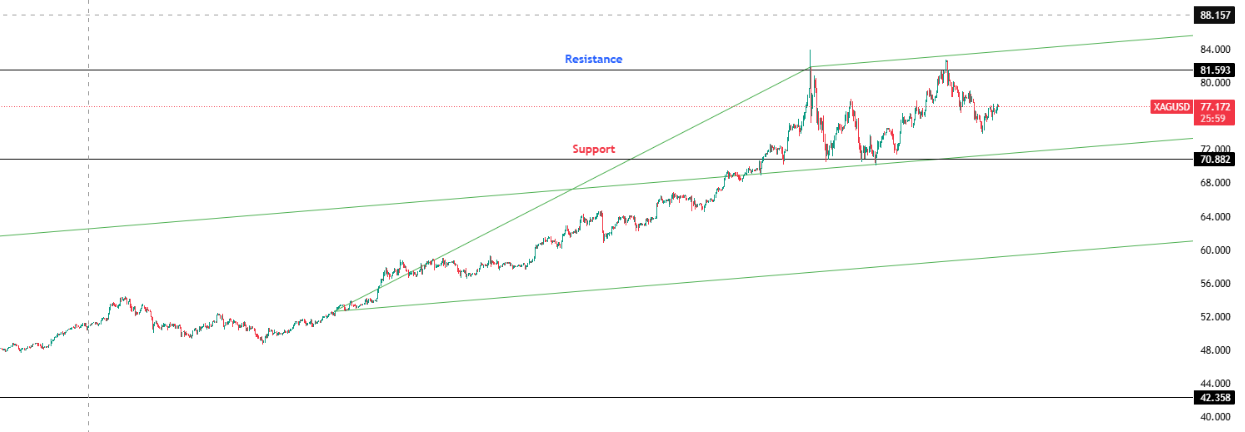 Key Levels: Support at $70.882 | Resistance at $81.593