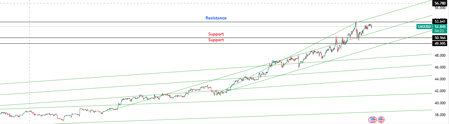 Silver remains in a bullish trend after breaking past $52, though intraday volatility has increased. Technical patterns remain constructive, supported by broader geopolitical risk sentiment.
