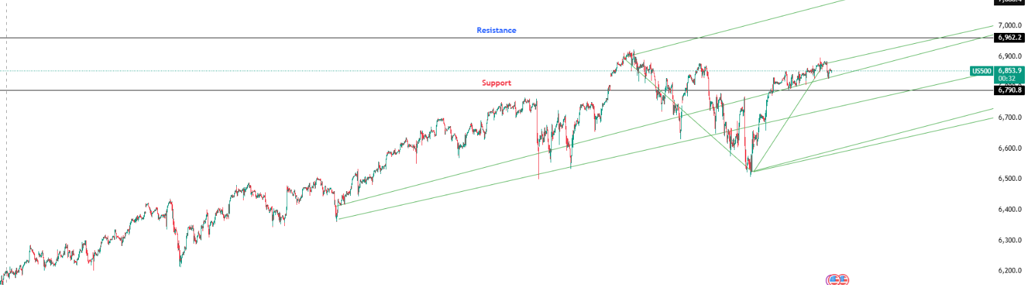 Key Levels: Support at 6,790.80 | Resistance at 6,962.2