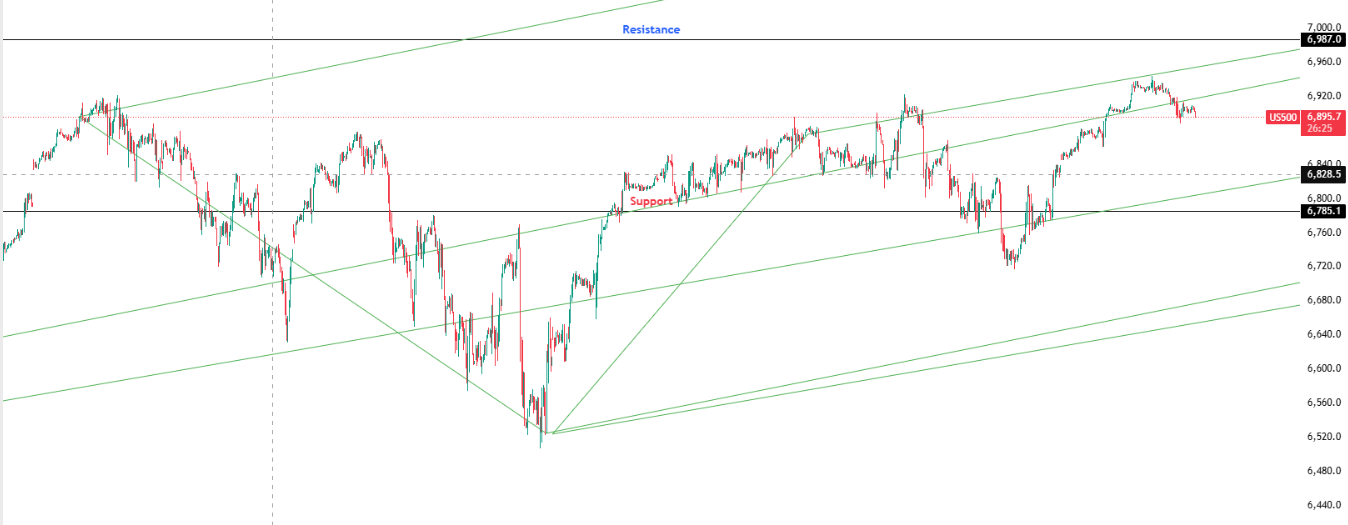 Key Levels: Support 6,785.10 | Resistance 6,987.00