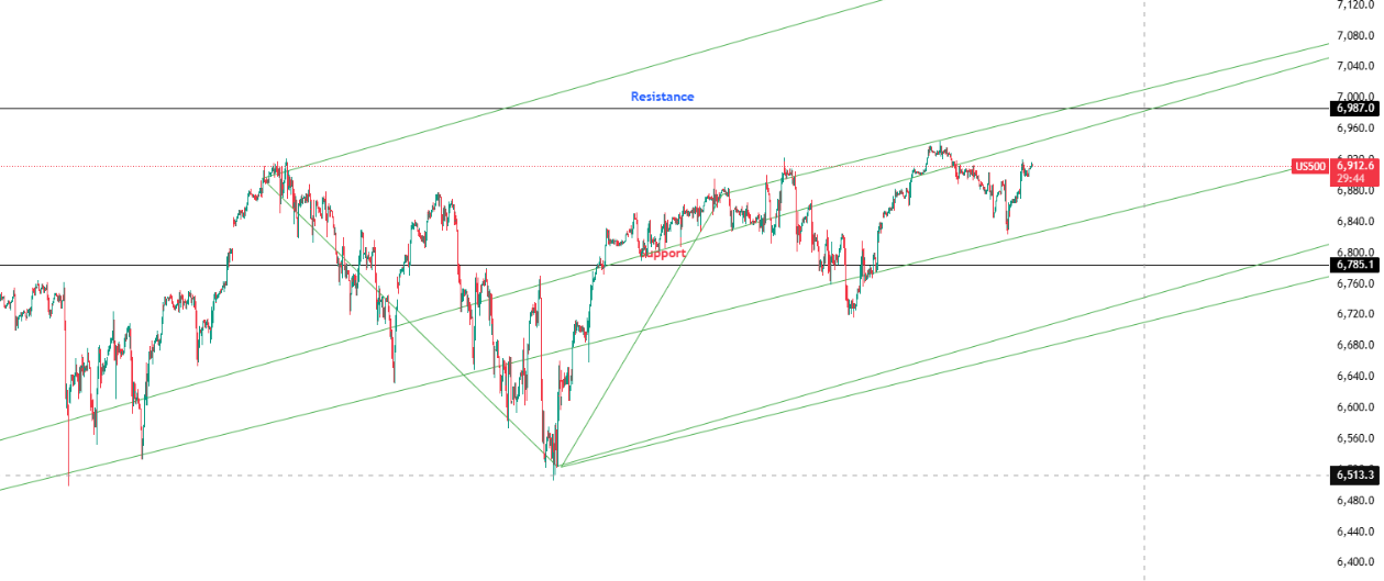 Key Levels: Support at 6,785.1 | Resistance at 6,987.0