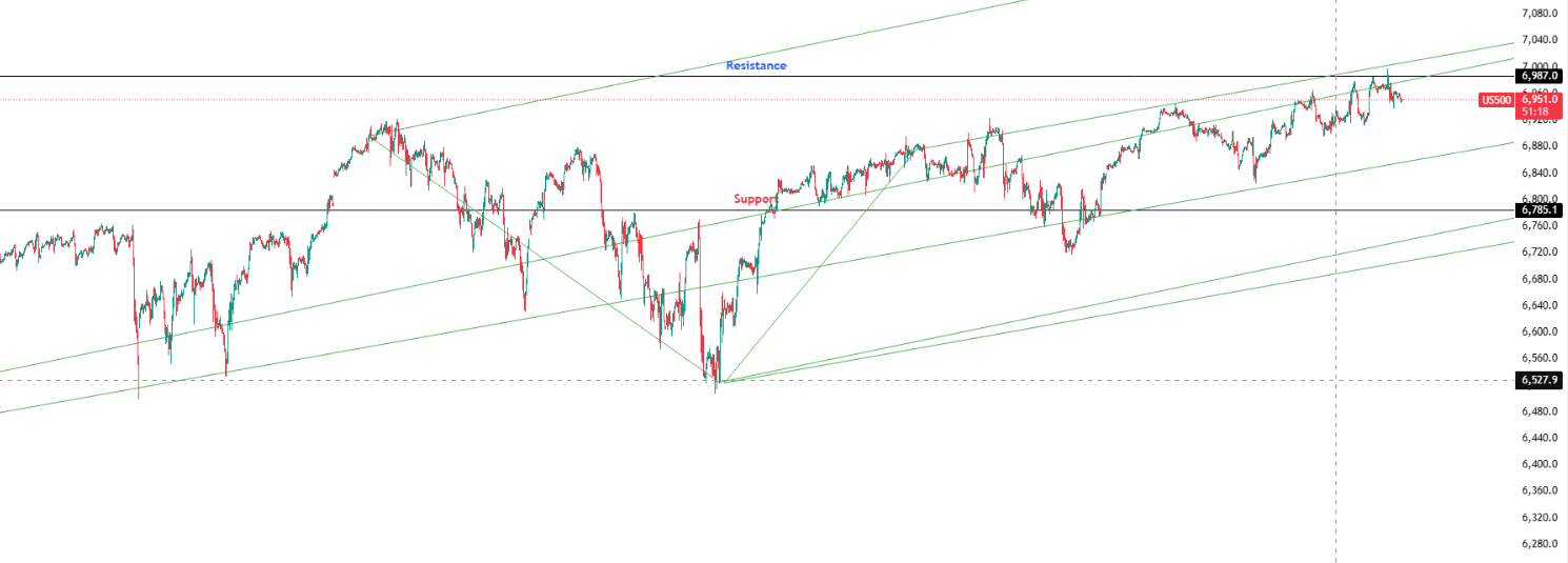 Key Levels: Support at 6,785.10 | Resistance at 6,987.0