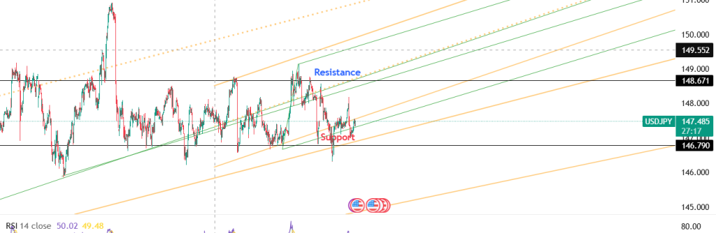 Key Levels: Support at 146.83 | Resistance at 147.98 / 148.55