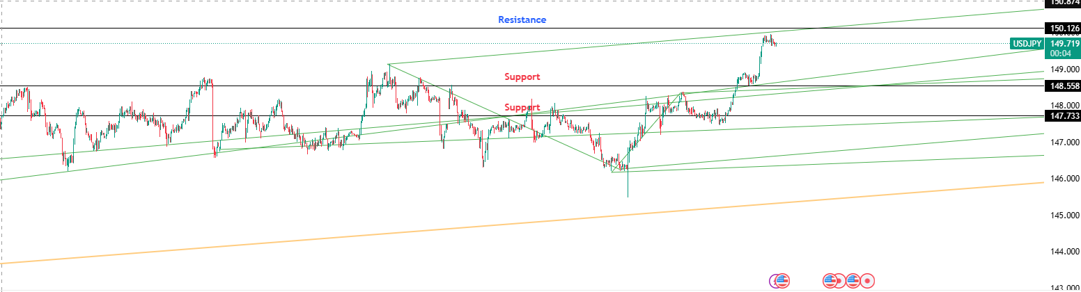 Key Levels: Support at 148.56 | Resistance at 150.13