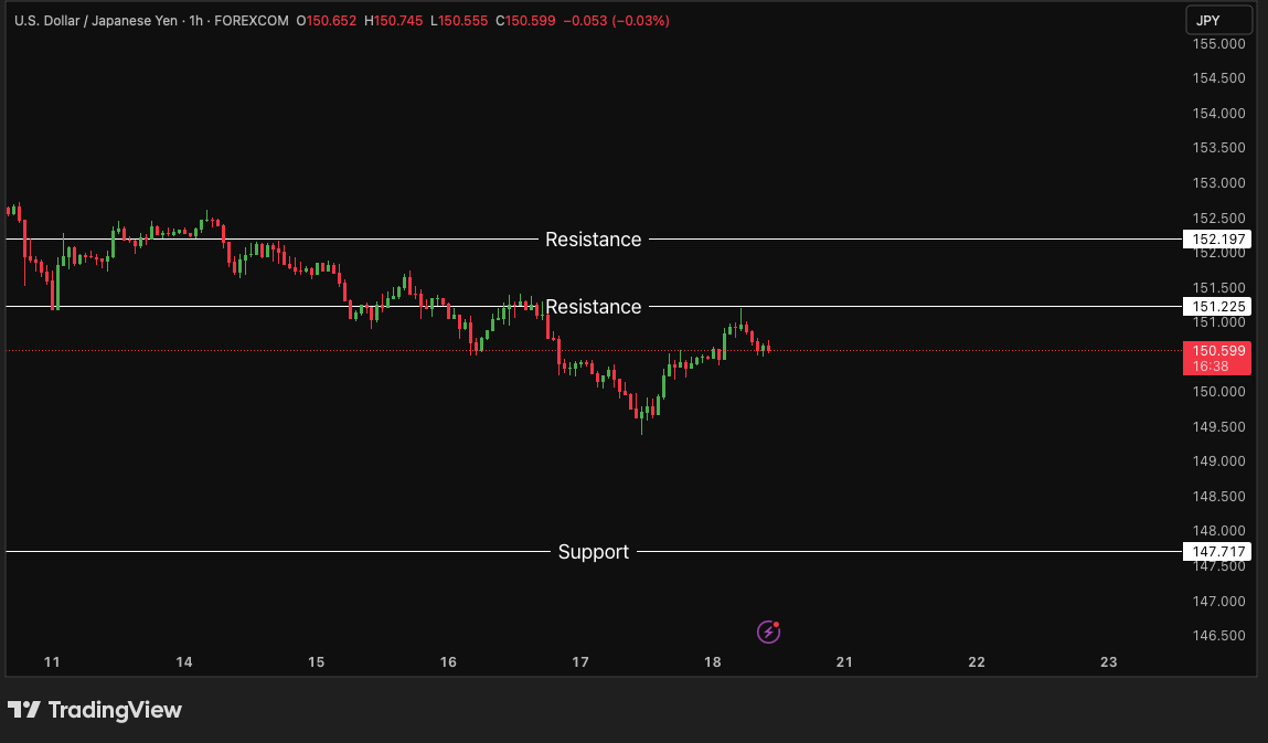 Investor Takeaway: Yen likely to remain under pressure; positions near support may offer buying opportunities, but resistance around $151 could limit rebounds.