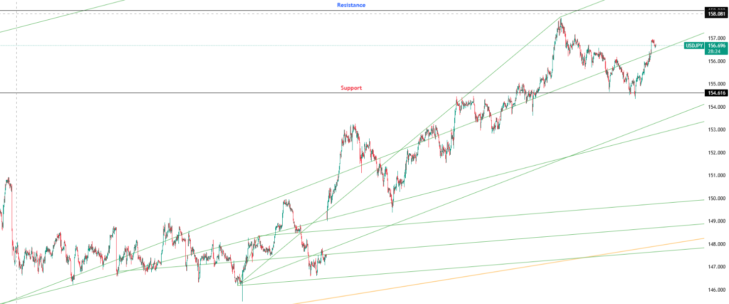 Key Levels: Support at 154.616 | Resistance at 158.232