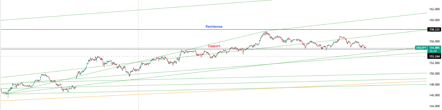 Key Levels: Support at 154.616 | Resistance at 158.232