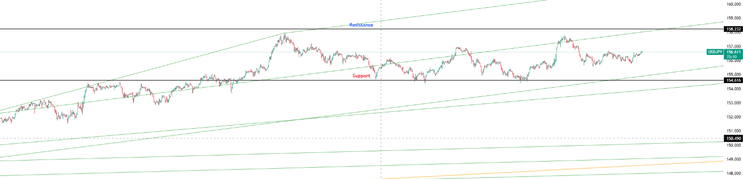 Key Levels: Support at 154.616 | Resistance at 158.232