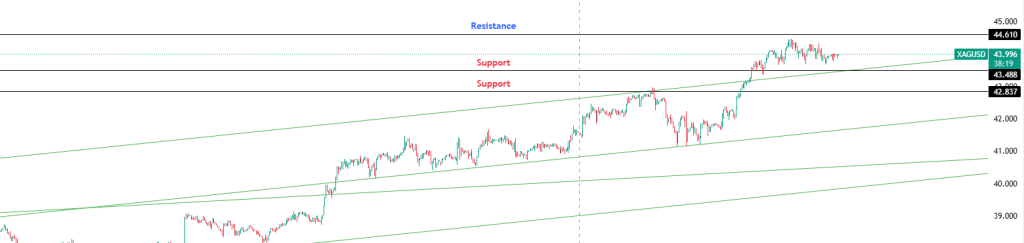 Key Levels: Support at $43.49 | Resistance at $44.61