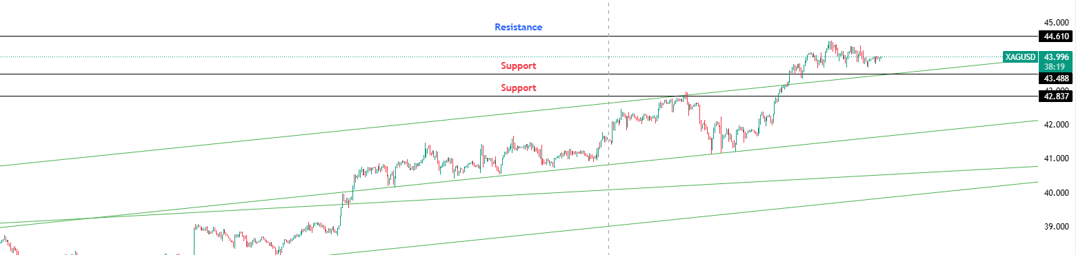 Silver is cautiously bullish after breaking $44, supported by improving U.S. growth and fading fears of demand destruction. Rate cuts provide additional tailwinds, though intraday volatility is high.