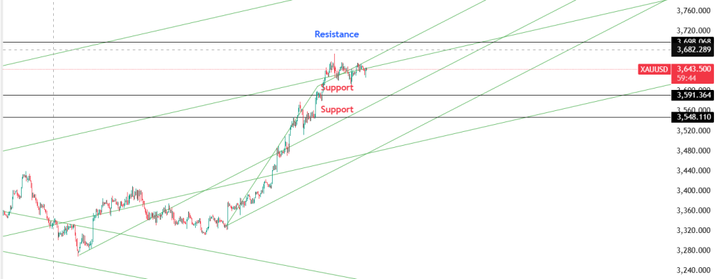 Key Levels: Support at $3,591 / $3,548 | Resistance at $3,698